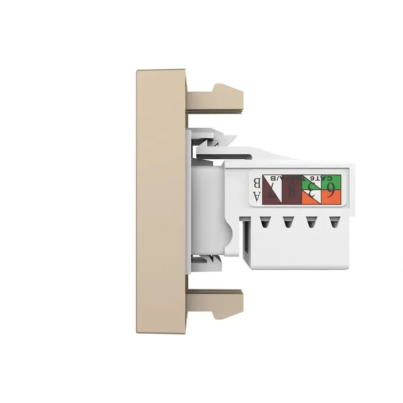 Datová zásuvka Welaik CAT 5E. RJ45 polomodul. Bez nástrojová, rychlá a jednoduchá montáž zajišťuje využití vysokorychlostních protokolů 100BASE-T i 1000BASE-T.