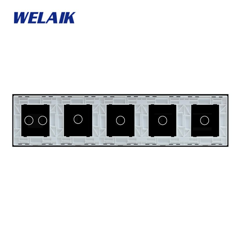 WELAIK pětinásobný panel vypínače skleněný 2+1+1+1+1 -černý