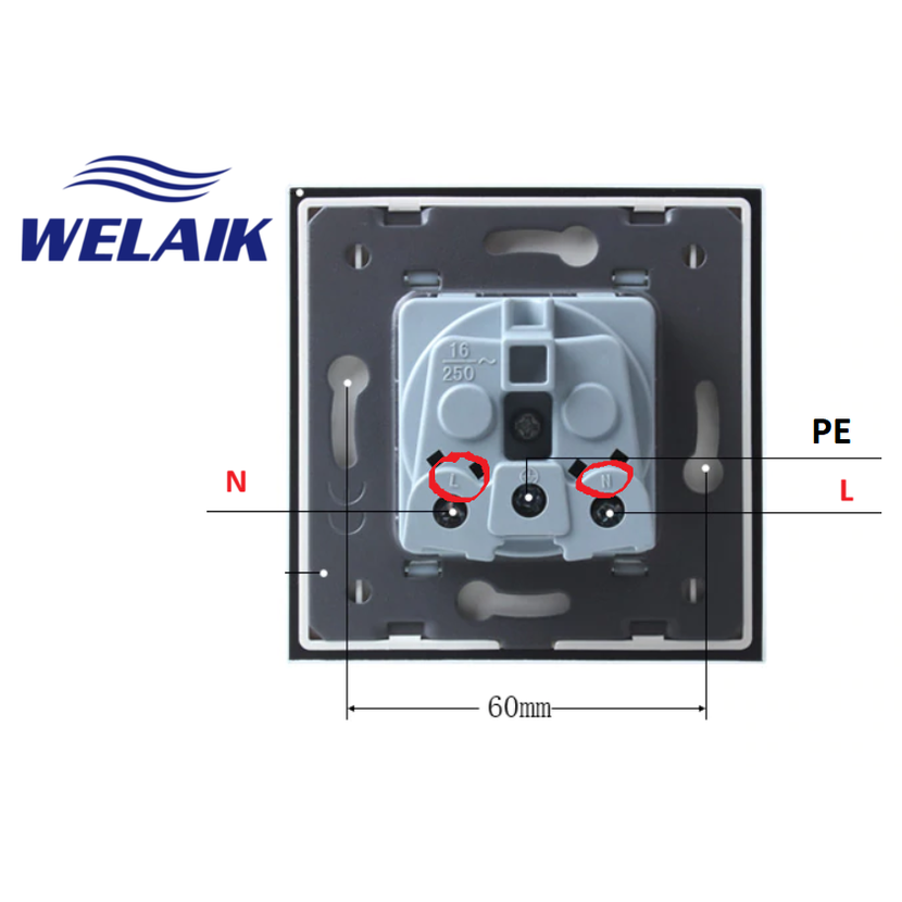 Pozor: na zásuvce jsou vylisované značky L a N opačně, jde o výrobní chybu a podle těchto popisů se nesmí zapojovat.
